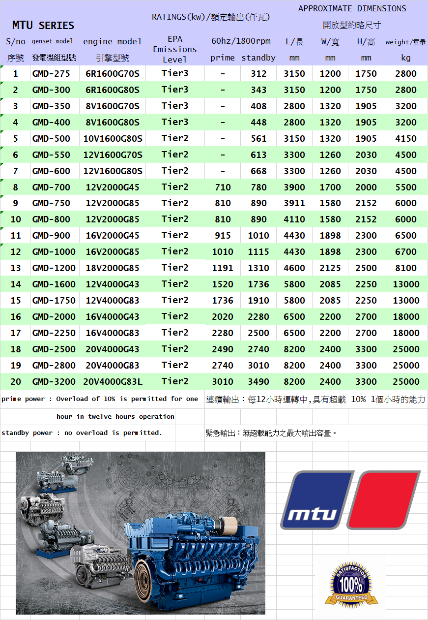 MTU引擎 發電機組型錄